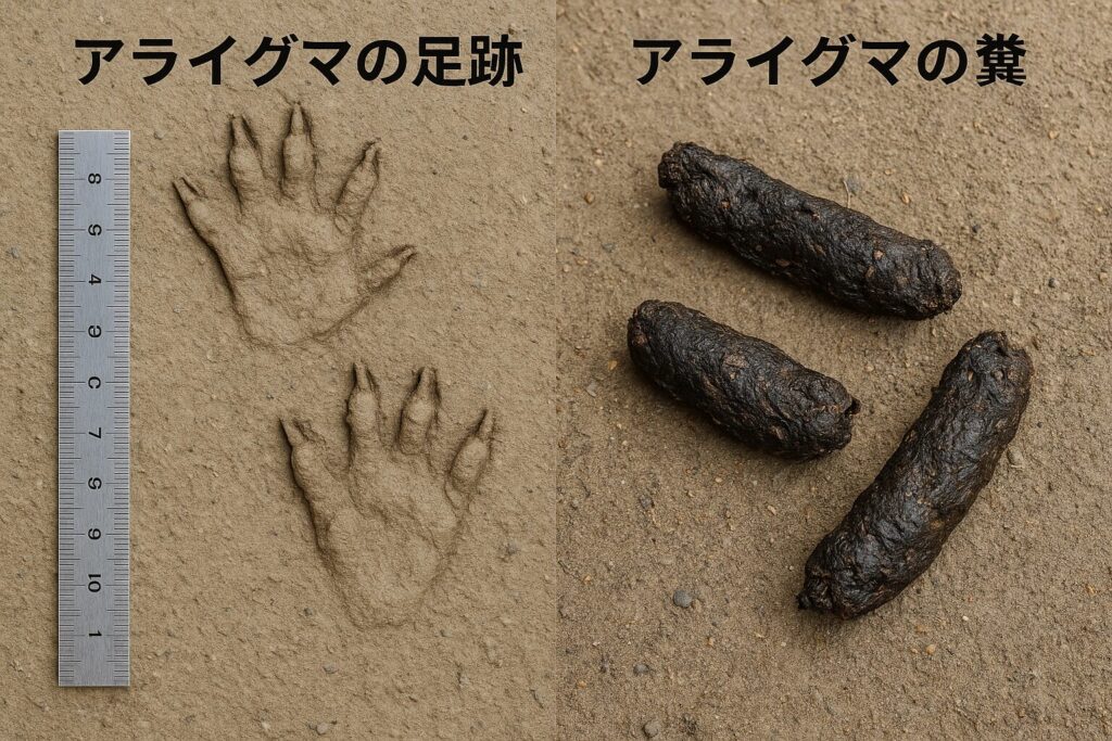 写真を見るときは、**「5本指」「手形っぽさ」「サイズ感」**の3つを意識すると、猫や犬、タヌキの丸い肉球型とはかなり違って見えるはずです。